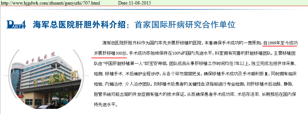 1、解放军第309医院2010年称肾移植“近三年稳居全国首位”,肾移植量 5年增长近8倍,2012又增加了移植床位数