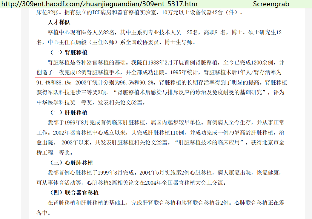 9、南京军区总医院至少在2001年,一年的肾移植就已经超过了1000例,而公开报的移植数量仅100例左右