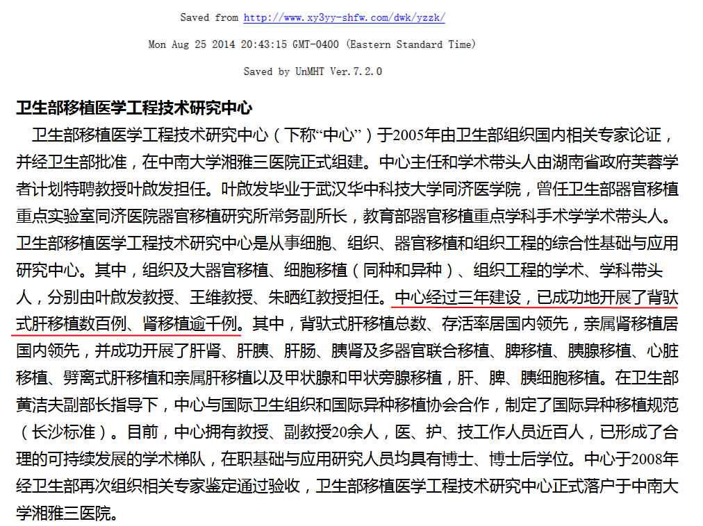 7、中南大学湘雅三医院:国家级器官工程中心,涉嫌为中共器官调配中心,肝肾移植数量上千例/年