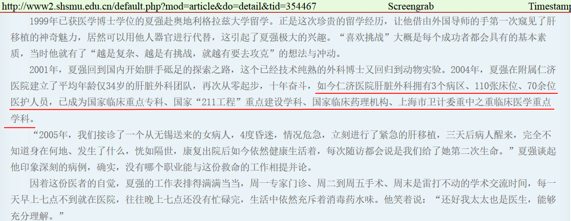 8、复旦大学附属中山医院: 2007年前移植量始终高速增长;2005年起不更新并篡改数据,后直接删除移植中心网站;医生直接承认使用法轮功学员器官;肝肾移植每年可达数千例
