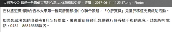 2、吉林旅游广播-吉林大学附一院免费肝移植活动“心肝宝贝绿色通道”报名处调查记录